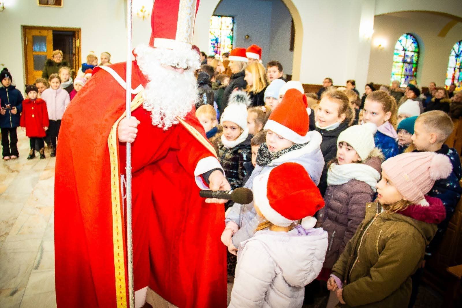 Dzisiejsza poranna Msza św. roratnia (6 grudnia) miała wyjątkowy charakter. Po jej zakończeniu dzieci i dorośli z radością powitali św. Mikołaja, który niespodziewanie odwiedził naszą świątynię. Spotkanie przebiegło w serdecznej, rodzinnej atmosferze, a najmłodsi obdarowani zostali drobnymi upominkami.